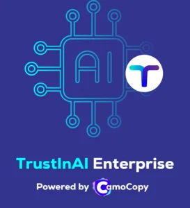 - ‘Prompts’ worden middels encryptie op de eigen server van CamoCopy bewaard voor een tijdelijke periode en daarna definitief verwijderd. De gebruiker van TrustInAI kan ook zelf definitief prompts verwijderen.